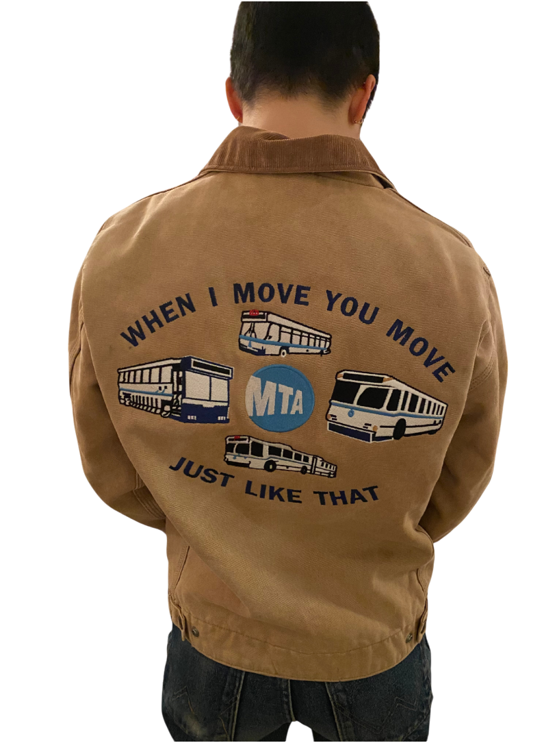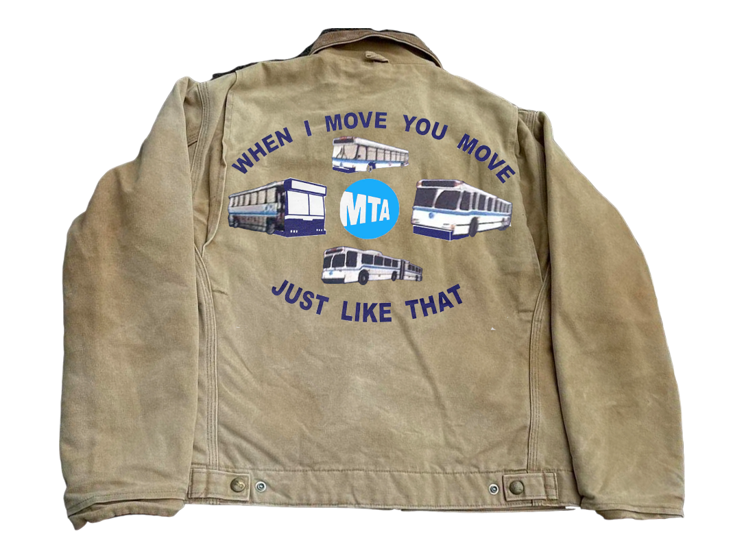 Variations of the Ludacris/MTA design can be found on shirts, sweatshirts, bags etc. but originated on MTA issue blue bombers. I refined the design to my liking and had a stitch pattern assigned. Work done at Uniform Palace.
